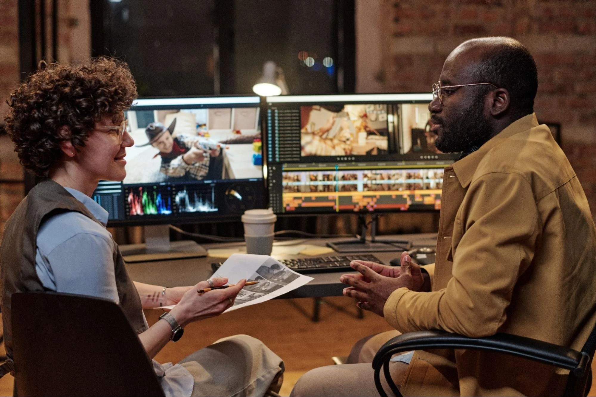 When you edit a video, that is when the story really comes together. Editing is about picking the parts and putting them in order so they make sense. You also add things to help the parts go together smoothly. The colors in the video can be adjusted to make it look really good and match the style of the company that made it. The company's video will look a lot better when the colors are just right.